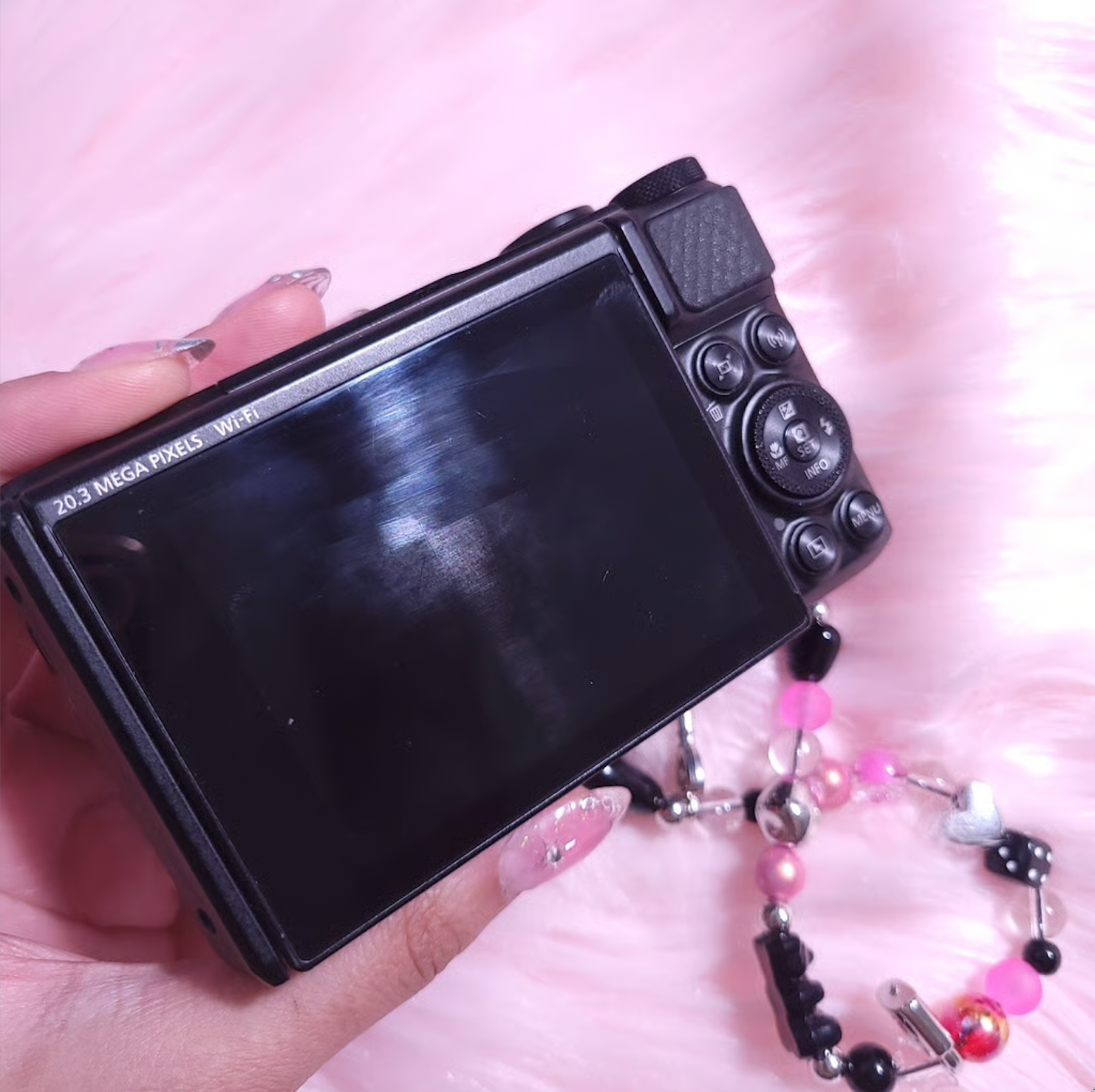 Takes beautiful pictures, comes with charm strap, charger and sd card